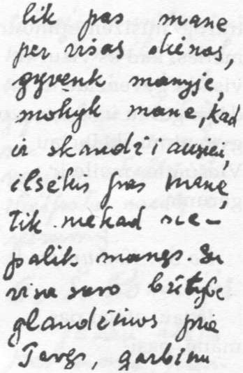 „nors sapne pabūti Tėvynės žemėje su savaisiais", o Tėvynėje likusiems, ypač